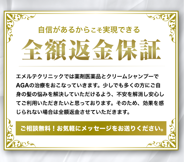 放置するとどこまでも進行し続けるAGAは、早めの治療によって薄毛の進行を食い止めることができます。