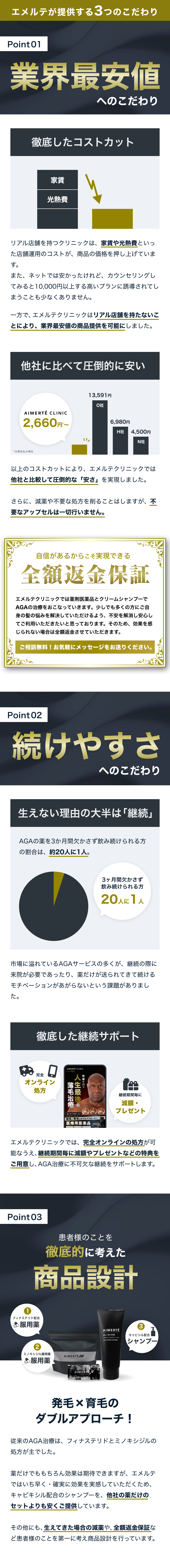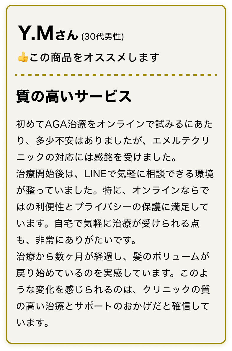AGA治療は早めのスタートが肝心ですが、AIMERTE CLINIC(エメルテクリニック)を受診するタイミングとしては、「抜け毛が増えたかも?」と感じた時がベストです。